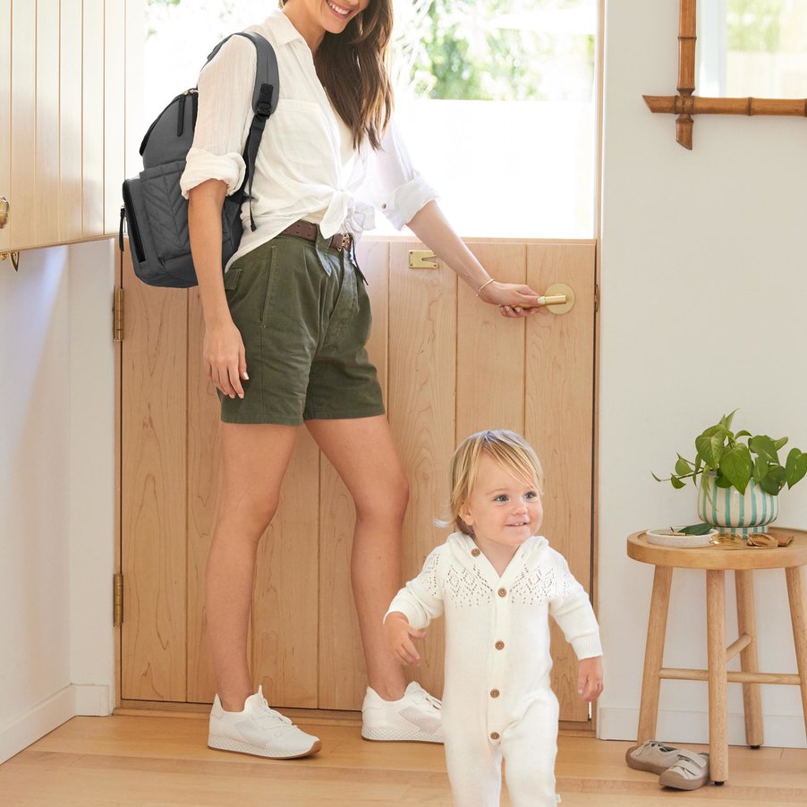 Nuestra mochila para pañales acolchada y liviana ofrece facilidad de manos libres y cubos de embalaje especiales para el equipo del bebé. El interior espacioso se adapta a todo, desde refrigerios hasta ropa de repuesto, y la apertura extra ancha facilita empacar y agarrar lo esencial en un abrir y cerrar de ojos.